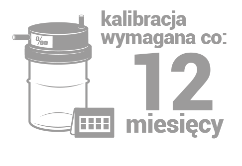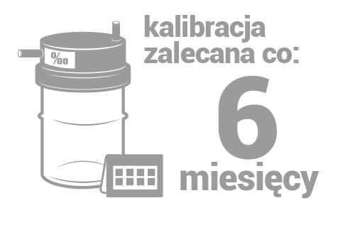 Kalibrację alkomatu PROMILER EBS-010 zaleca się przeprowadzać co 6 miesięcy, natomiast obowiązkowo — nie rzadziej niż raz w roku. W celu jej wykonania wystarczy przesłać do serwisu wyłącznie sam moduł sensora.